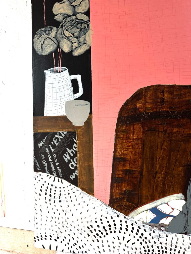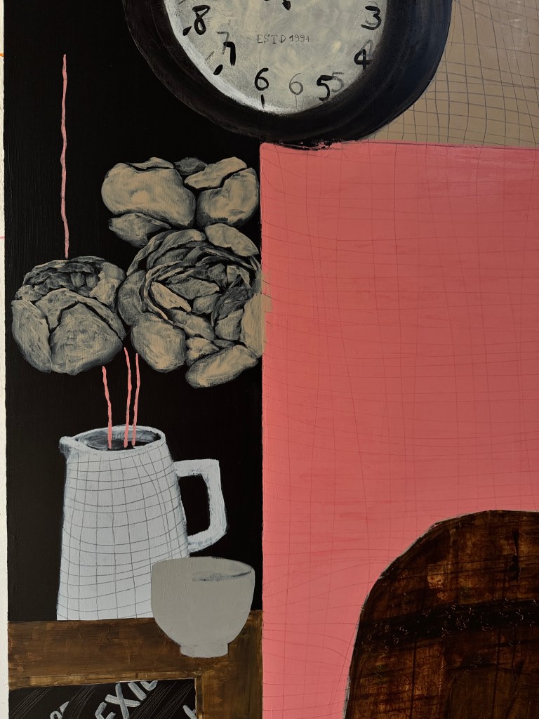 I didn’t know what I was looking for but I found it by serendipity, DETAILS, Acrylic on MDF, 122cm x 92cm, April 2025.