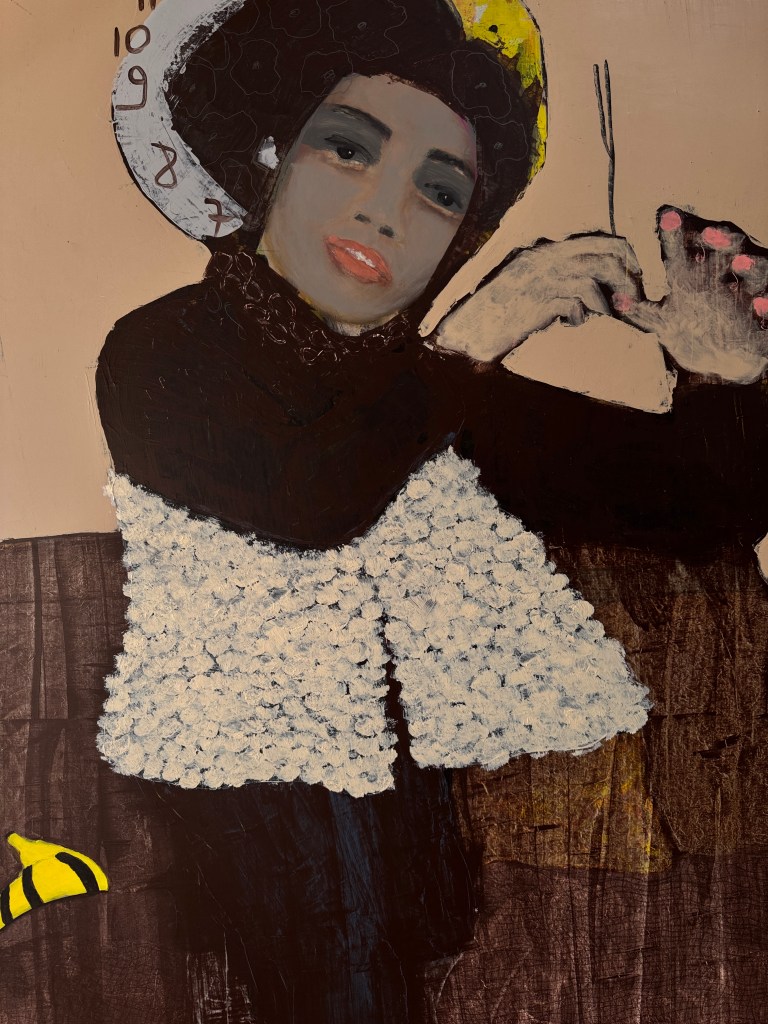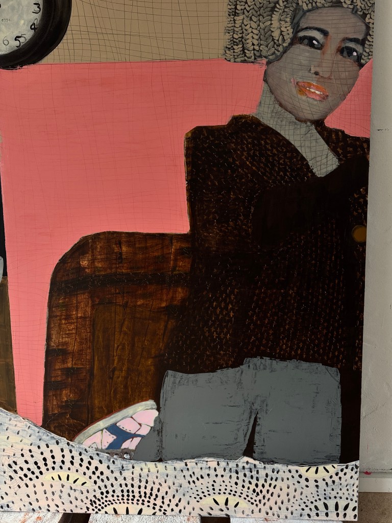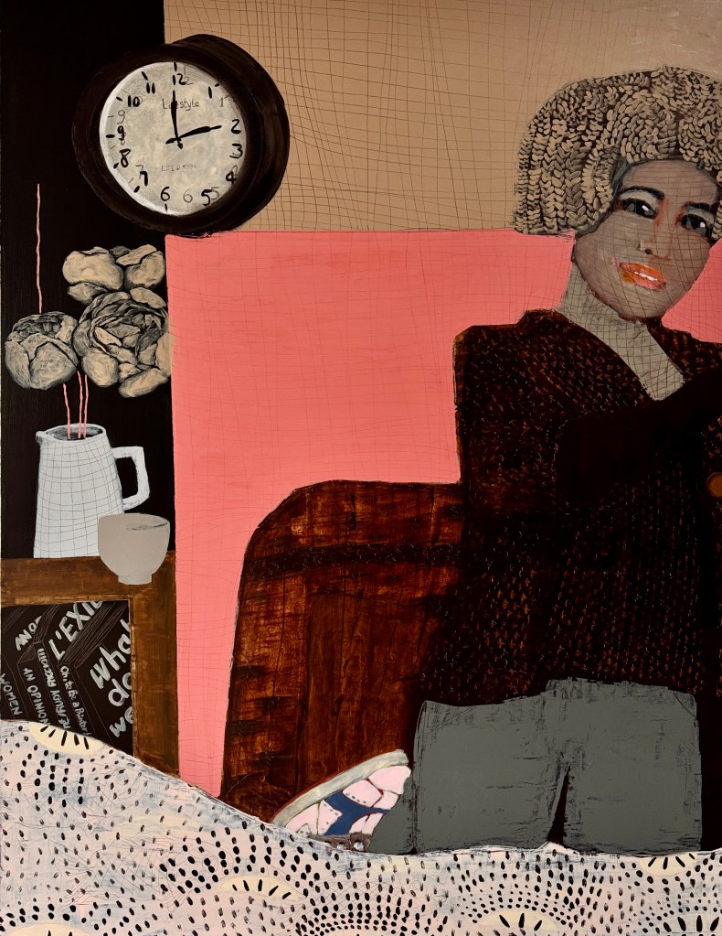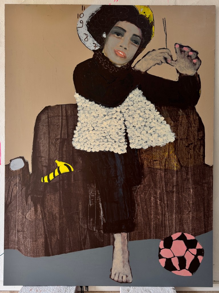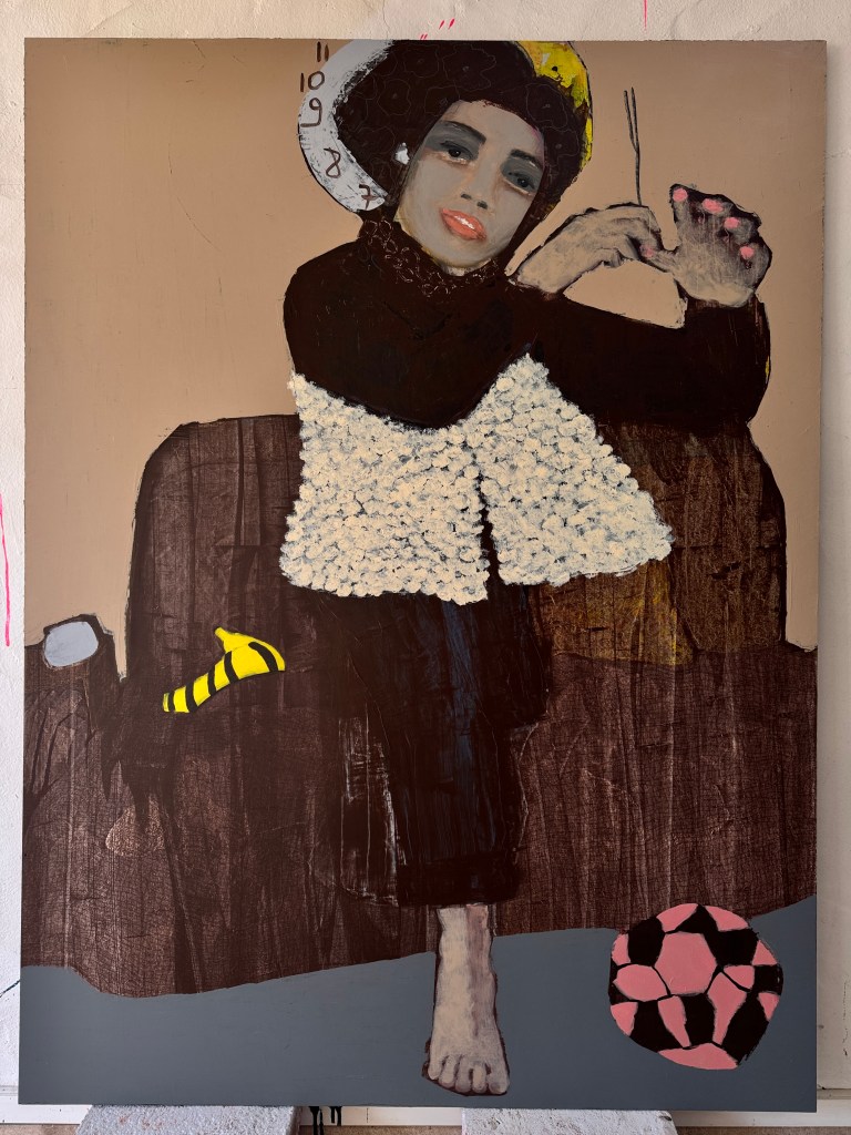 The Knitter, acrylic and pencil on MDF, 122cm x 93cm, January 2026.